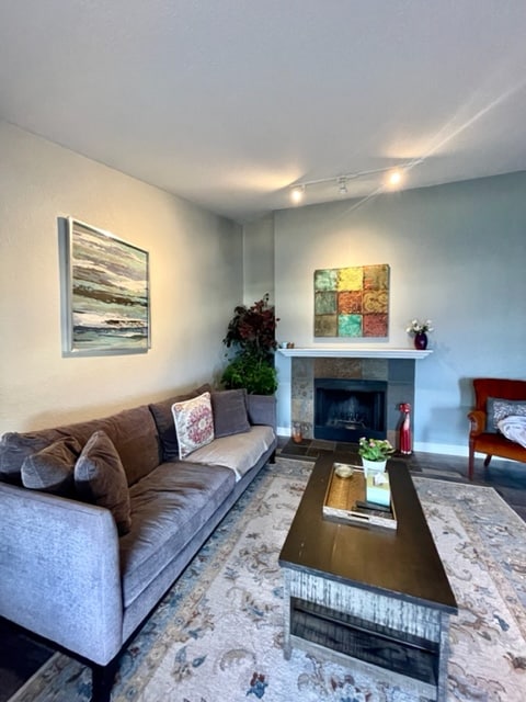 This beautiful and renovated condo unit with stunning view but very functional and practical. The furnished suite has 1 bedroom and 1 1/2 bathrooms has a modern open space concept for living. The condo features a majestic unobstructed view of the scenic natural Sinclair Inlet . The condo has a west coast inspired designer kitchen, signature live-edge cedar counter top, vinyl plank flooring, and cozy wood fireplace. Truly a home away from home. All that is missing is you and memories.