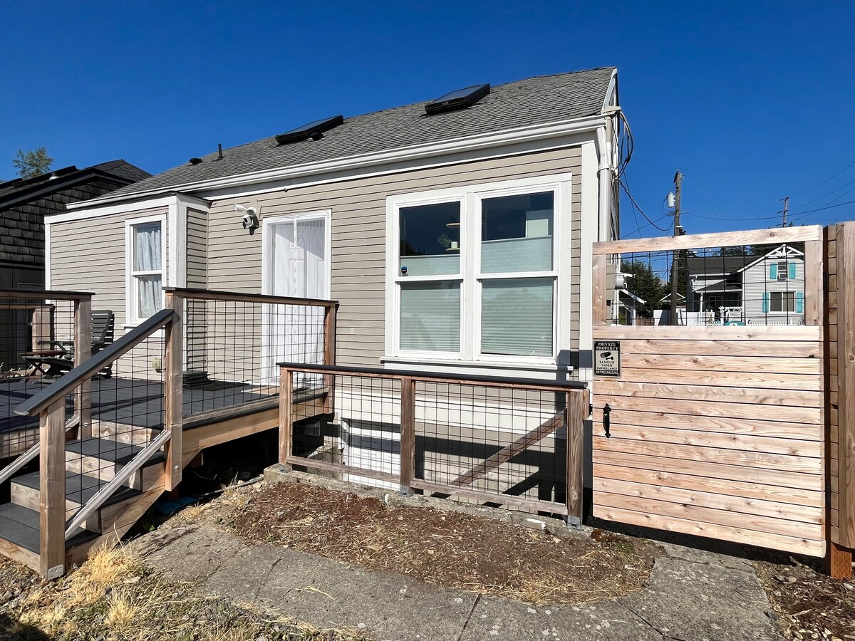 You'll love our super clean and modern-designed beachfront guest suite with water views on 3 sides. The suite is adjacent to an active marine passage featuring ferries, yachts and occasional Navy vessels. Enjoy sea life such as sea lions, seals, otters, and orcas. 420 sq.-ft. unit has a queen size bed w/ privacy sliding door, small kitchenette (microwave, mini-fridge, coffee maker and dishes/flatware), iron, thermostat, cable TV, Wi-Fi and year round hot tub inches from Puget Sound.