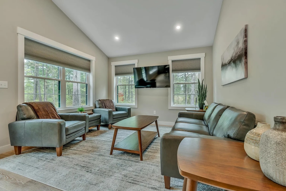 Discover serenity in our Wells, Maine farmhouse-style cabin—a haven where coastal allure meets modern sophistication. We are located just a stone's throw from downtown and a short drive to the stunning coastline. Here's what awaits you during your stay with us: ✔ Hot tub ✔ Fire-pit with Adirondack chairs ✔ Gas BBQ grill ✔ Pet-friendly for dogs ✔ Complimentary beach chairs ✔ Smart TV and plush sectional ✔ King bedrooms ✔ Fast and free Wi-Fi ✔ Air conditioning