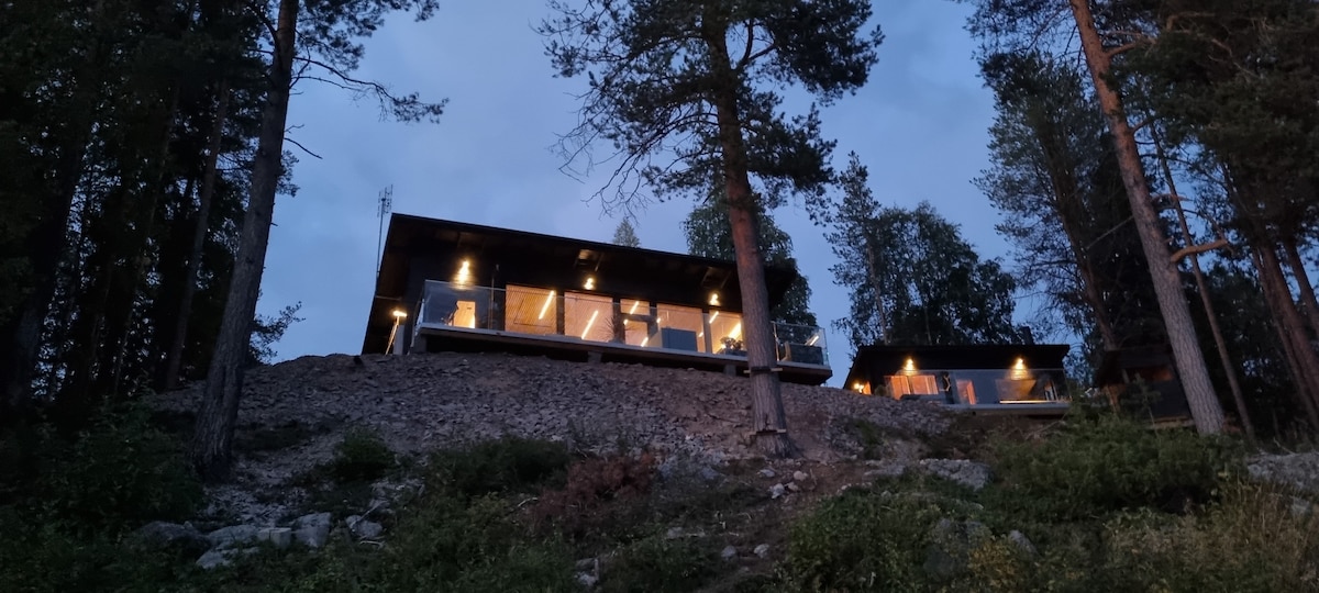 Modern igloo style cabin with glass roof. The roof is heated to make sure it's always easy to enjoy watching aurora borealis, stars or just the beautiful mountain landscape. Own private sauna and outdoor jacuzzi to bring that extra luxury. 38m2 cabin includes one 180 cm bed at the balcony and one 140 cm sofa-bed. Well equipped kitchen with dishwasher. Free Wi-Fi, parking and washing machine with dryer. Price includes the final cleaning up and bedlinen and towels. Ig: levinloihtu