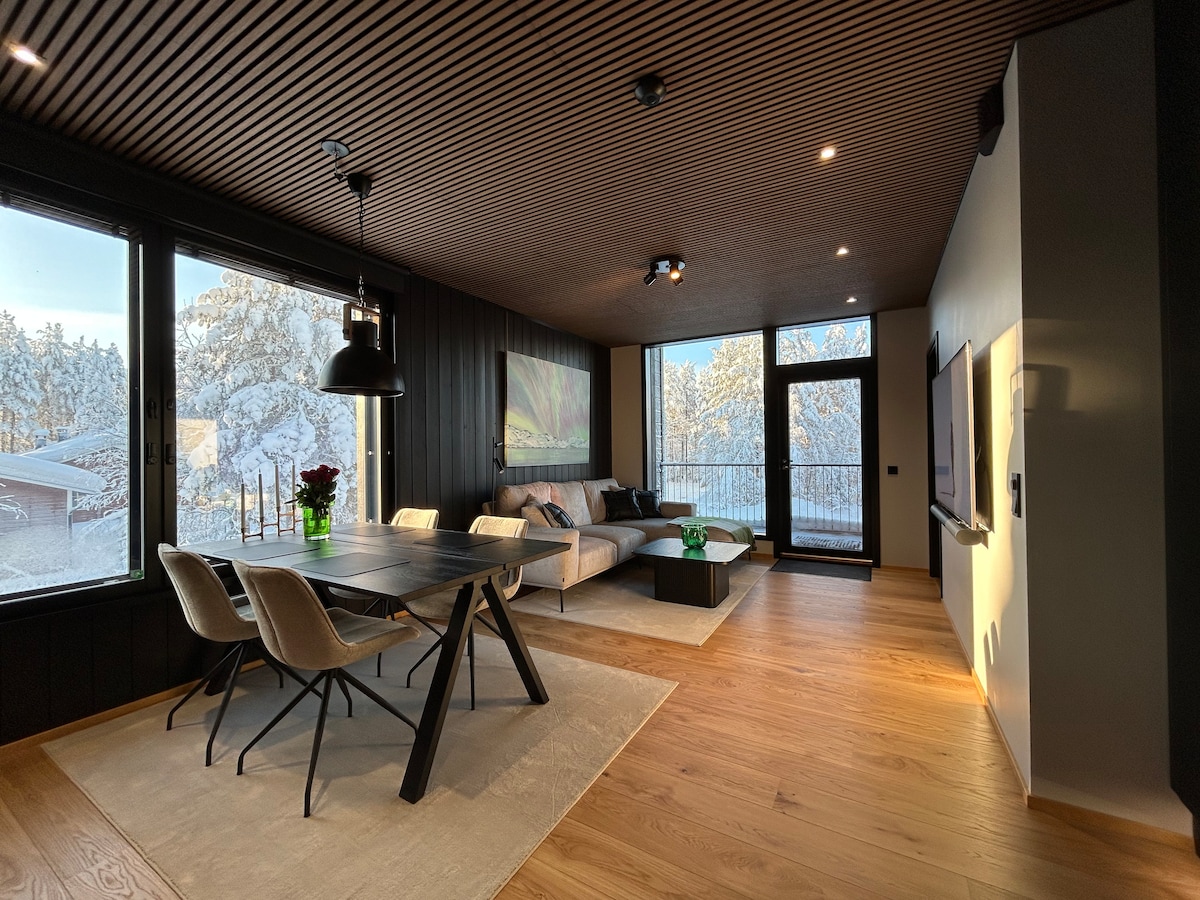 A premium ski‑in ski‑out apartment on Levi’s west slopes, offering luxury and comfort for up to four (+1) guests. Step directly onto the slopes from your front door. Modern amenities, stylish interiors, and an unbeatable location make this the perfect base for an effortless and memorable mountain getaway. Sit back and relax in this calm, stylish space.