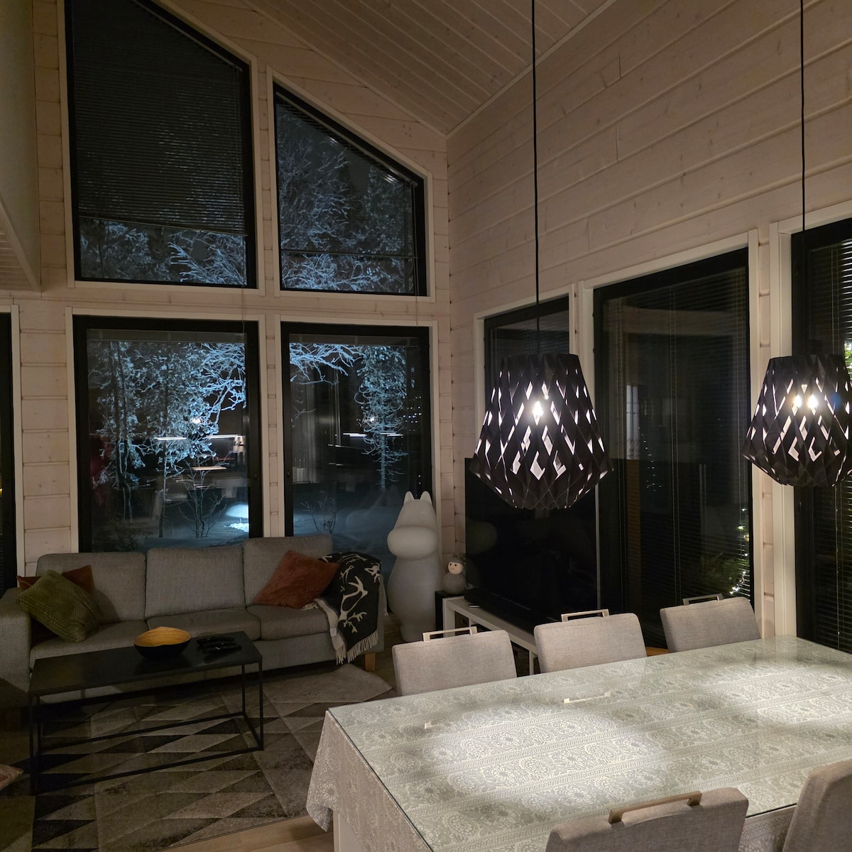Levin Villa Repo is a modern and stylish log cabin with two bedrooms, completed in December 2023. It spans 80m² and is located in a peaceful setting, directly adjacent to forest and cross-country ski trails. The villa's large windows offer stunning panoramic views of the enchanting nature and forest landscapes. The villa includes a carport and ample parking space in close proximity. Additionally, there is a shared grill hut in the villa village. Free Wi-Fi is available. Ig: levin.villarepo