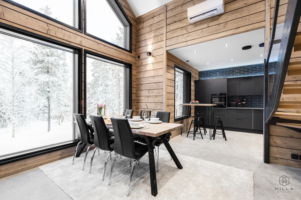Villa KaLi A tarjoaa laadukasta lomamajoitusta Levillä. Huvilan suuret ikkunat tuovat luonnon osaksi oleskelua ja avautuvat kauniiseen metsämaisemaan. Suojaisalla terassilla voit rentoutua porealtaassa omassa rauhassa, ja sisältä löytyvät modernit, ylelliset puitteet niin arjen irtiottoon kuin pidempäänkin lomaan. Tämä villa yhdistää tyylikkään mukavuuden ja Lapin luonnon rauhan täydellisellä tavalla. Porealtaan käyttömaksu 100€ per varaus.