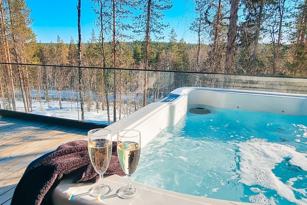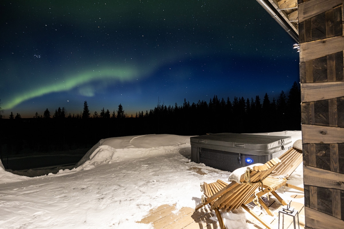带按摩浴缸的隐秘极光小屋
