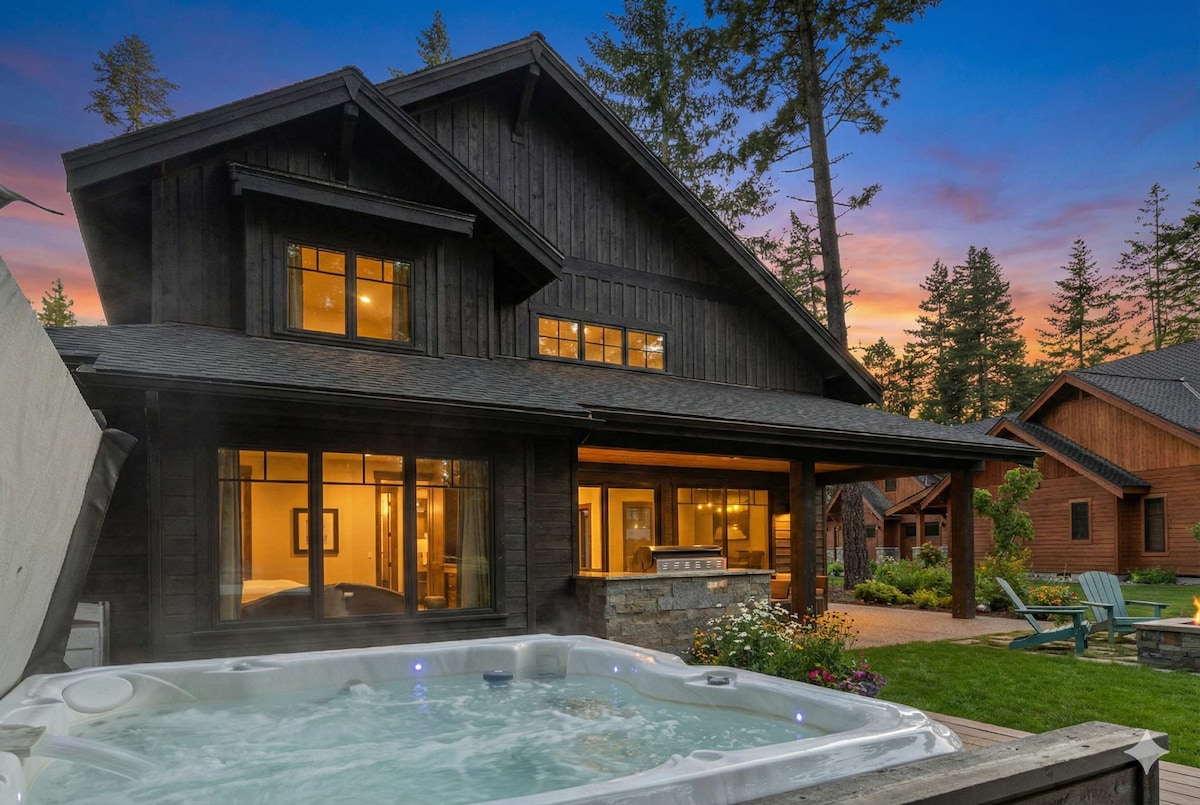 The Beach House with hot tub is newly constructed, located on the Wenatchee River in Leavenworth, WA. The beach is a rare find with a swimming area in July & August. Book a tubing trip at our beach with OspreyRafting or get your ski & snowboard rentals on site with Osprey Ski Shop.There is a covered hot tub and BBQ enclosing the lawn with river views. The interior is an open floor plan with a cozy fireplace, vaulted ceilings, granite counters. There are 2 bedrooms & 2 futons in the common area.