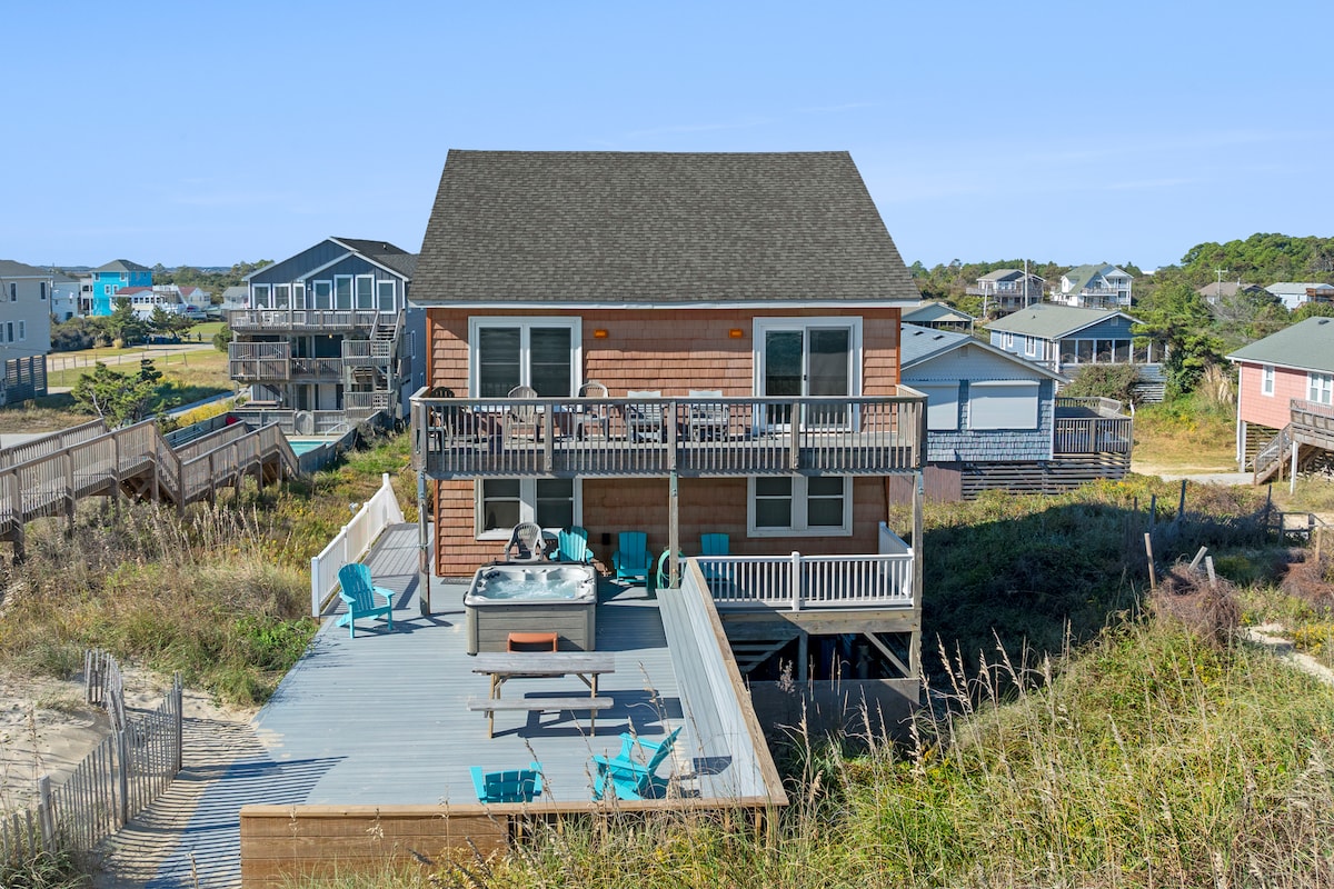 Our 3 BR 2 ½ BA beach cottage located in KDH, just 750’ from beach access, is perfect for the multi-generation family vacation, or for a couple looking for a romantic getaway. Whether you start your day with a short 5-minute walk for a famous OBX oceanfront sunrise, or finish your evening in our 7-person hot tub, you will not be disappointed. Plus, our high-speed internet and cable service make it perfect for those that need to stay connected, either for school or work. Min renter age is 24