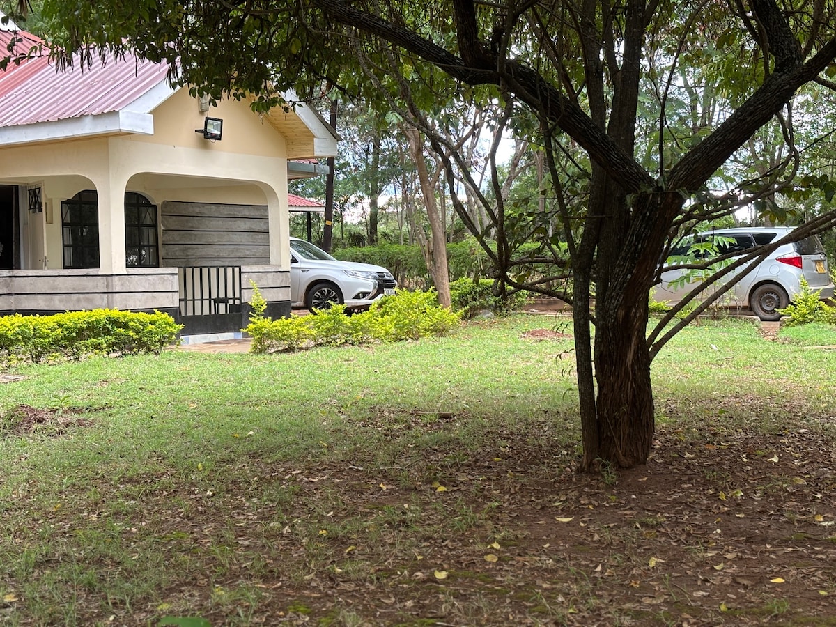 Take a break away from the noise of the city as you relax with family and friends at this peaceful wildlife retreat 1 hour away from Nairobi. Home situated on farm with fresh green spinach, lettuce and rocket, fresh eggs laid by our hens daily Take leisurely walks to see wildebeest, giraffes and zebras in the area or do bird watching. Wireless internet available Free Parking Nearby Swimming pool