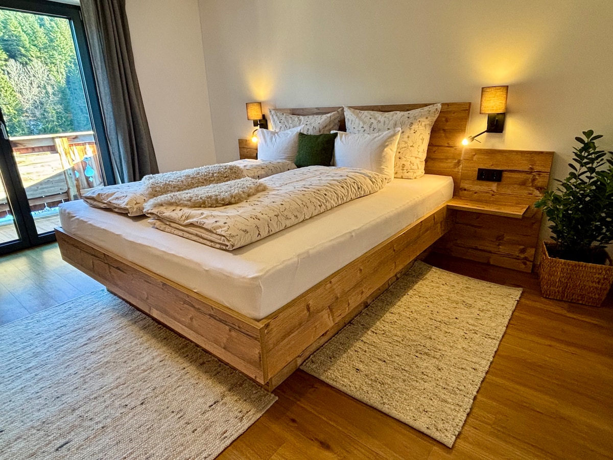 靠近施瓦茨湖(Schwarzsee)的舒适公寓-2个阳台景观