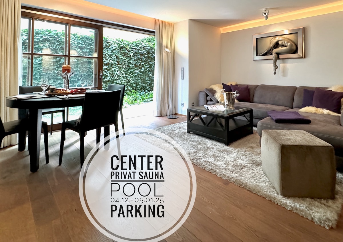 PURER LUXUS FÜR GENIESSER Die Suite für 4 Pers. bieten all denjenigen besonderen Luxus, die es schätzen fußläufig zur Hahnenkammbahn zu wohnen und direkt im Haus Spa, Pool & Fitness genießen möchten. Neben der Lage zeichnen sich die Suite vor allem durch den eigenen privaten SPA Bereich mit Sauna & Dampfdusche aus. Durch den direkten Anschluss an das 5* Deluxe Hotel „Weisses Rössl“ könnt Ihr auch den großen modernen Pool sowie sämtliche SPA Einrichtungen von 12. Dez. -31. März kostenlos nutzen