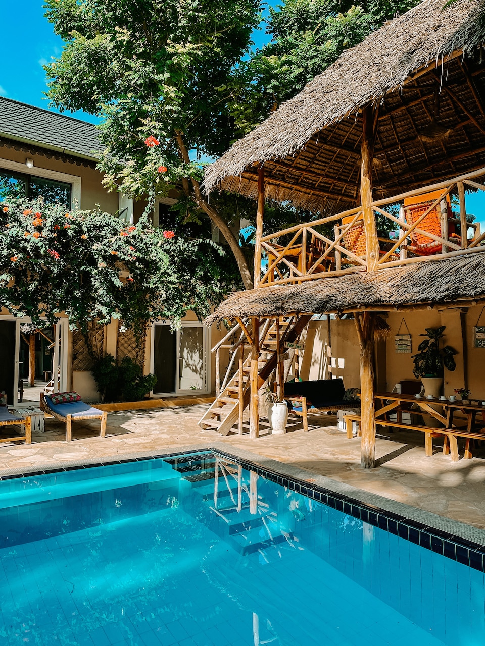 Mwendawima Villa is a luxurious 4 bedroom villa with the beach just outside the gate and a team to take care of all your needs. It beautifully mixes the exotic Swahili architecture with the tropical feel and offers true Zanzibar hospitality with delicious cuisine. Located in the village of Jambiani, it overlooks the most beautiful lagoon in East Africa. The villa has 4 bedrooms, a private swimming pool within our tropical garden and a terrace with ocean views.