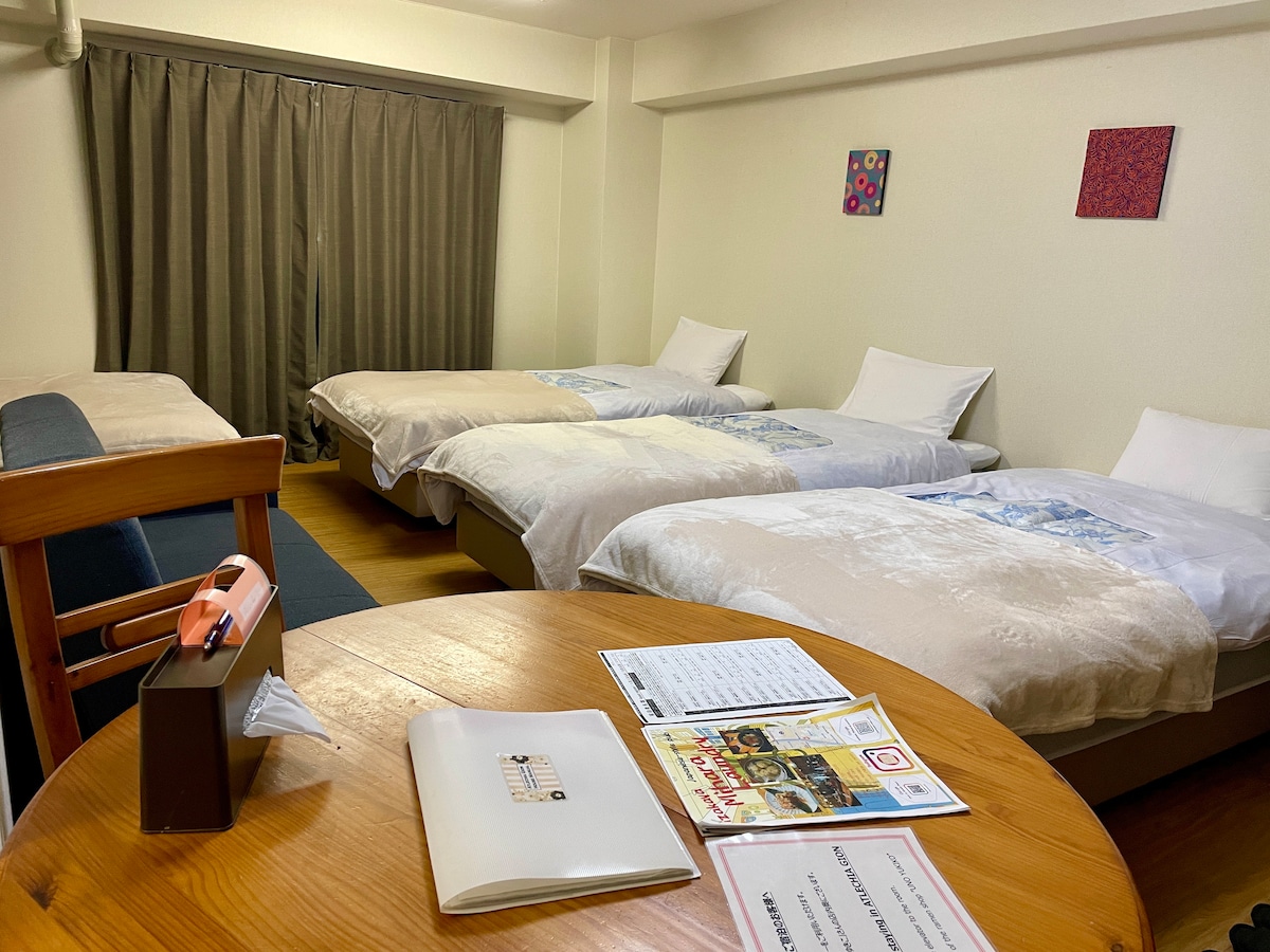 房源2020年全新改建裝修,位於京都站和近鐵東寺站之間,走路到AEON MALL和京都地標東寺五重塔都只需幾分鐘,周邊200米內有羅森便利店、711便利店、全家便利店、Fresco超市、生鮮超市、KFC、Mos Burger、吉野家、松屋、BOOKOFF、電影院京都みなみ会館等。 房源是身處京都南區靜謐傳統街區的全新兩層一戶建,三臥室兩衛浴最多九床,免費WIFI、洗衣機+烘乾機、空氣淨化器等一應俱全,距離京都站约900米步行12分、距近鐵東寺站僅150米步行2分鐘即到,十分便利造訪京都各處景點。 依照京都市酒店業相關法規,客人入住前需提供護照、在留卡等身份信息文件做登記備案,我們會據此為客人代繳京都市宿泊稅。房源最大入住人數:9人(1F:和室榻榻米4人;2F:洋室單人床x2 2人+和室榻榻米3人)。 房源全區域含門前街道禁煙,晚間九時後請保持安靜避免噪音。房客退房時間為上午10點,無故延遲退房超過60分鐘加收半天房費,無故延遲超過90分鐘加收一天房費。 房源大門外裝有監控攝像頭,僅拍攝門前街道做日常安防以及設施外帳場管理用途,此設備為京都市旅館業法相關規定必要設施。