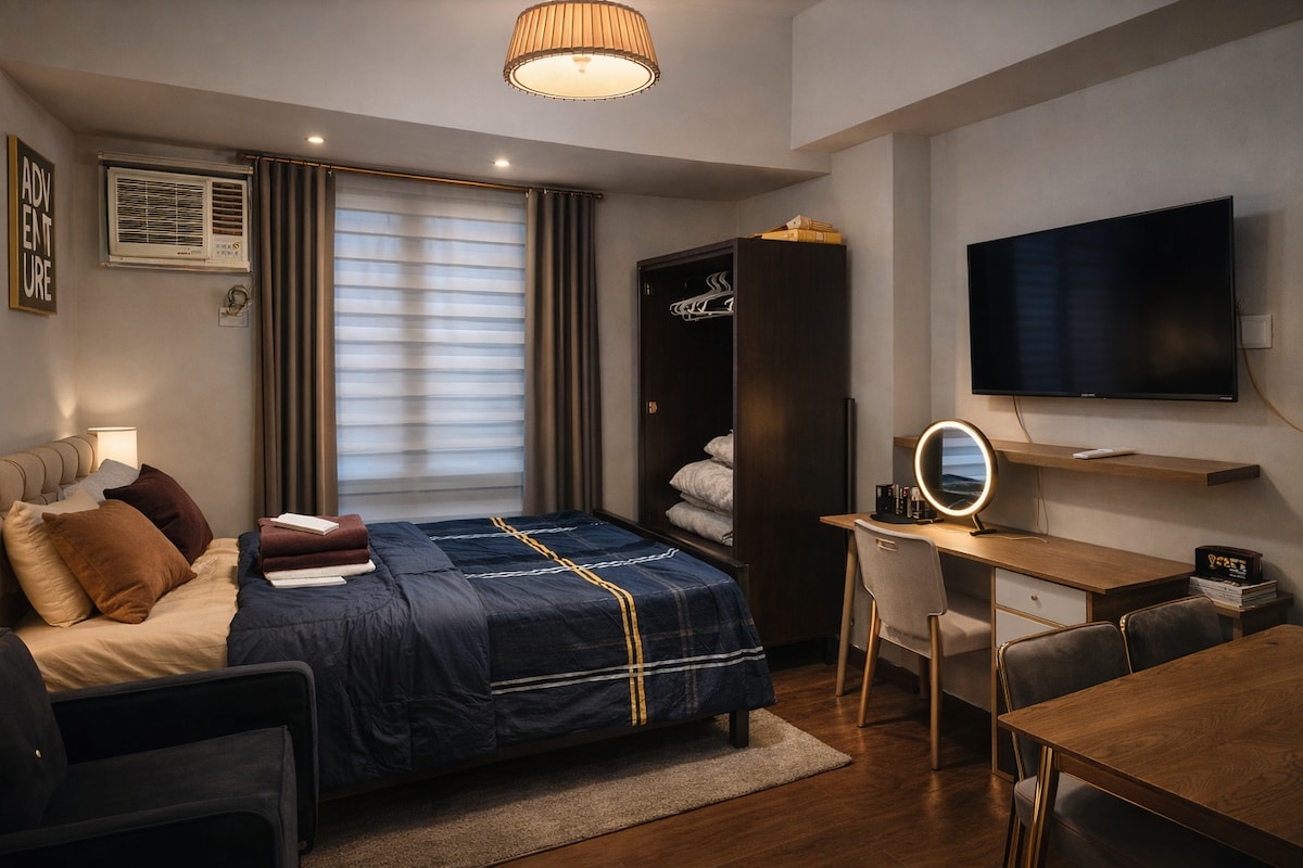 Welcome to your urban oasis nestled in the heart of downtown Cagayan De Oro City! We thoughtfully designed this suite to offer a relaxing ambiance, making it the perfect place to unwind. Kick back on the comfy sofa , enjoy a movie in your bedroom’s smart TV, or catch up on work at the dedicated work space. You can also prepare your favorite meals in our kitchenette equipped with a microwave, refrigerator, kettle, and cookware. Enjoy your meals in peace in our cozy table for 4.