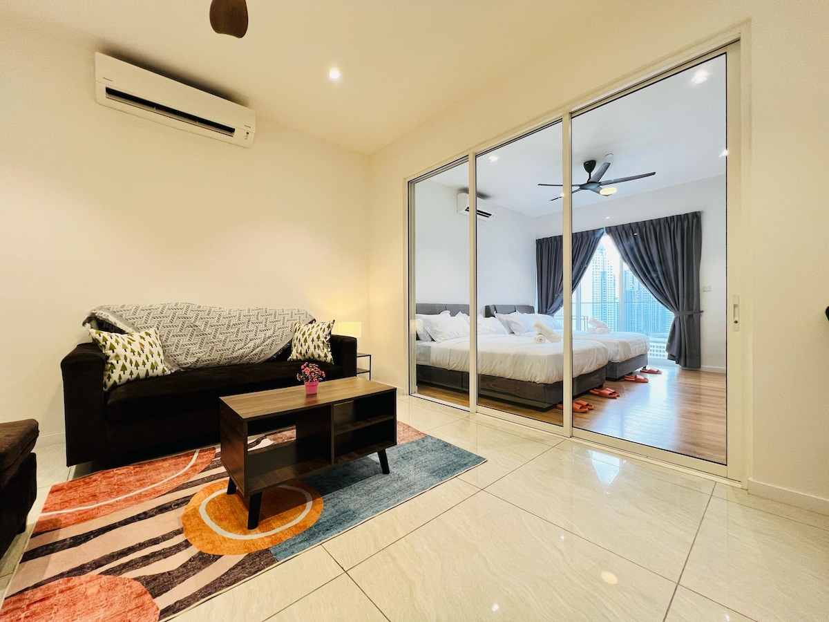 Sit back and relax in this calm, stylish space. Why Seashell suite at Lucentia Residence - Best views of KL - Beautifully decorated with a fun spirit - Centrally located & attached to public transit hub - Fast wifi - 2 TVs with Netflix & others - 2 gorgeous pools - Family friendly with baby crib & highchair - Gym, pool table, BBQ pits, piano - Garage parking - Recommended to Sleeps 6, max 8 person - LaLaPort Shopping Mall & the WOW entertainment street are attached - Grocery, drug store & Cinema