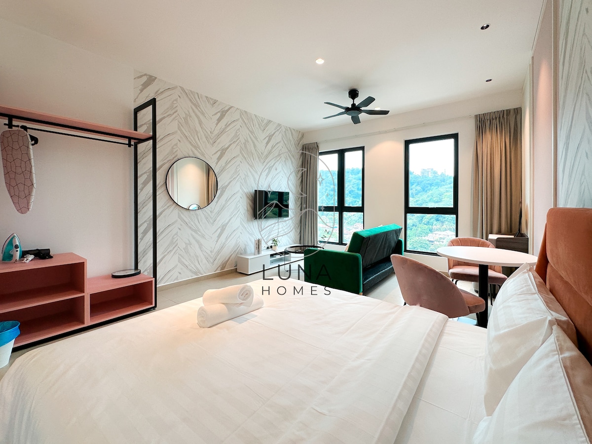 Why choose Luna Homes, 1. 4K SMART TV with a complimentary Netflix subscription. 2. Free access to co-working lounge (23A floor). 3. Rooftop salt water swimming pool & jacuzzi with a hill view (25th floor) 4. High-speed WiFi. 5. Free access to fully equipped gym.