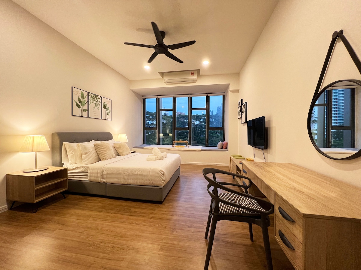 Why stay at The Palm's Junior Suite at Lucentia Residence - the views of KL - beautifully decorated with a fun spirit - centrally located - near public transportation - fast wifi - TV with Netflix, Apple TV, Prime Video - 2 gorgeous pools - gym, pool table, BBQ pits, paino - super host manager - garage parking - recommended for 2, max can sleeps 3 - LaLa Port Shopping Mall & entertainment street are attached - grocery, drug store, and many restaurants are attached - movie theater Gsc beside