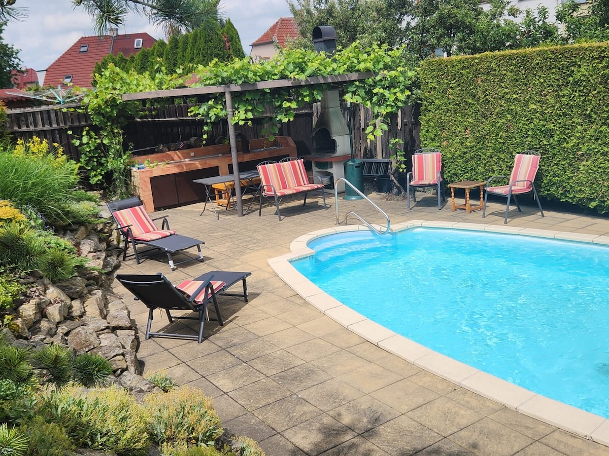 We offer accommodation in the cosy house with 2 bedrooms and a spacious living room with a kitchen. Václav Havel Airport Prague and the POP outlet, home to Majaland Prague - the largest indoor amusement park in the Czech Republic, are both just a 5-minute drive away. You can take a bus 312 to Bořislavka, the nearest Metro station, that will take you 20 minutes. Guests have their own adjoining garden where they can relax or barbecue. Next to the house is a swimming pool that guests can use.