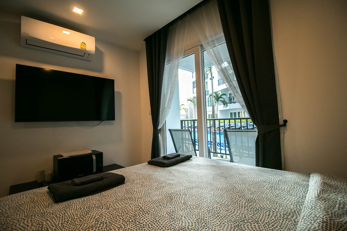 Brand New luxury Condo.1st beach line of breathtaking sunsets and empty beaches.Just in touch for great numbers of Thai and Euro food restaurants and bars. Fresh markets offering to you really ECO food and Flavor of Thailand. Escape has a perfect close area with 2 pools and own restaurant.Private beach else is for you