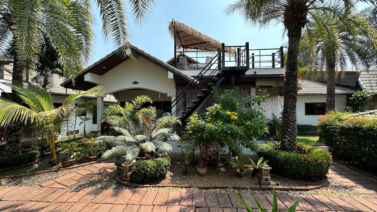 Welcome to our 2-story villa (ca.120 sqm) in the east coast of the Gulf of Thailand. Offering 3 bedrooms with unique views, a comfortable living room, a well-equipped kitchen, and outdoor terraces. Explore the garden with palm trees, splash in the beautiful shared pool or stroll to one of the best mainland beaches - Mae Phim Beach, just 350 m away. Perfect for families or couples. Enjoy a relaxing, safe and memorable vacation in a luxourios Seabrezze Estate by the sea.