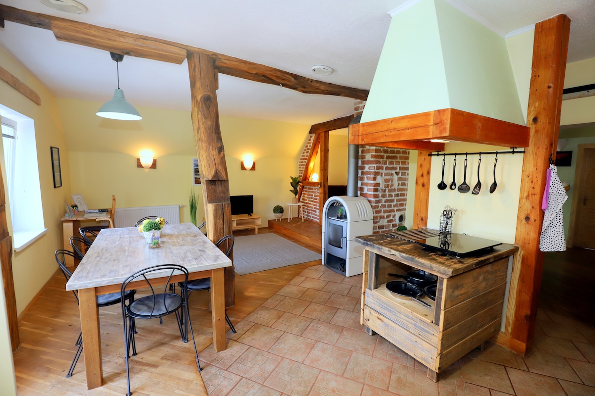 Apartment Gabrijel is situated at a peaceful location in an unspoilt nature, away from the city hustle and bustle. Here, you can enjoy the peace, quiet and fresh air. The Jezernica creek, which flows past the house, creates a pleasant babbling sound. The small kitchen is spacious enough for you to prepare homemade teas and proper Slovenian coffee. Making yourself one of these drinks, you can relax on a lovely terrace with a view of the neighbouring pasture where horses graze.
