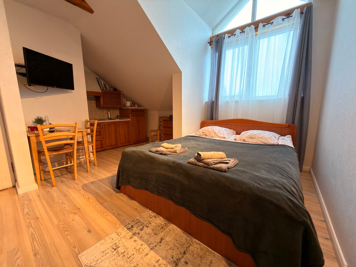 Spacious double room with a private bathroom. Enjoy modern amenities and plenty of natural light, creating a tranquil and inviting atmosphere for a peaceful stay. Capacity: 2 guests Breakfast: Available for €7.50 Pets Not Allowed Children under 2 years old stay for free when sharing existing bedding with parents.