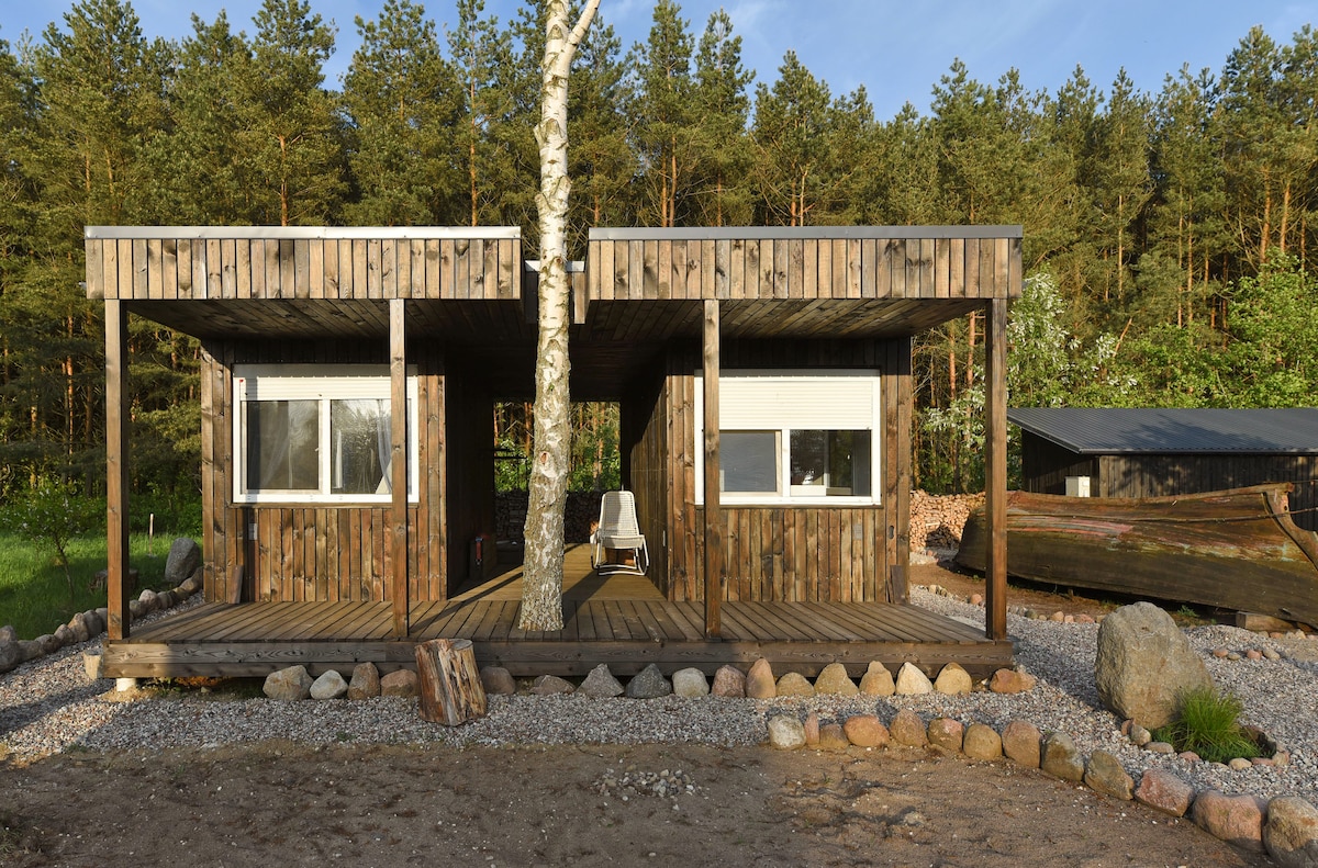 This is an architecturally modern interpretation of a traditional Lithuanian homestead, located in a very picturesque location of the Salantai Regional Park, next to the Minija river slopes, on the Sauseriai forthill, surrounded by Natura2000 forests and cultivated blooming meadows. We invite you to visit us, stay in 1of2 unique tiny architectural houses, swim in the river, spend time in sauna or massage spa pool, walk in the forest when it rains or snows, enjoy food, conversations and nature.