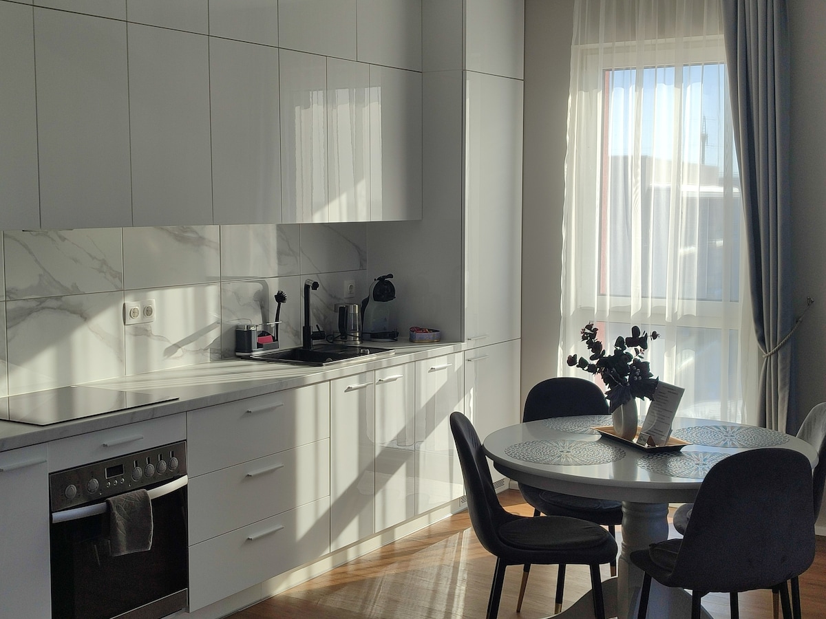 Brand new top-floor apartment with a custom-made cozy interior furnished by a professional designer. High quality home appliances and fully-fitted kitchen will ensure smooth and calm holidays for you. Free personal car parking spot, 10 minutes by car to the Old Town of Klaipėda. Events, parties, smoking and pets are strictly forbidden. This place is meant for relaxation. CITY TAX: There's a 1€ per guest per night fee imposed by the city. You'll be asked to leave the required amount in cash.