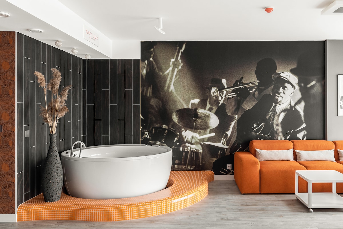The sky CHOCOLATE is a modern and elegant self-catered 70 m2 fully equipped accommodation with three balconies, huge jacuzzi, infra red sauna, private parking and amazig view. located on the 30th floor within walking distance of both the biggest city mall the Akropolis, and also the ferry port to the Curonian Spit.