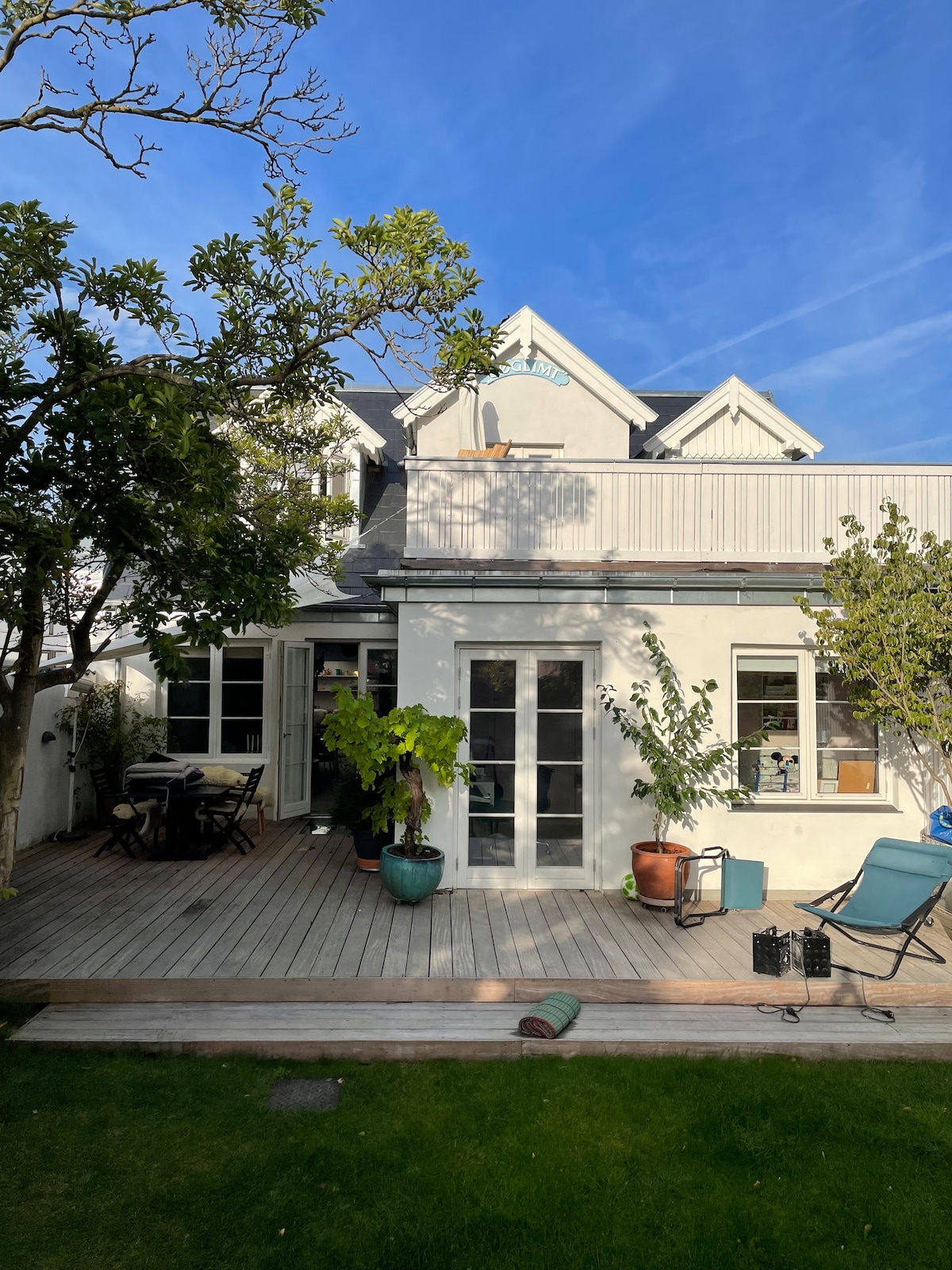 Mit lille skæve træhus, vil give Jer mulighed for ro - Slap af i denne unikke og hyggelige bolig. I vil have Dyrehaven, Bellevue strand og Klampenborg station i få minutters gåafstand - og dermed være i centrum af København med alle dens kunstmuseer og fristelser på 15 min med Kystbanetoget. Min frodige have og skønne træterrasse er oplagt til stille stunder og div hygge med ell uden markisens skygge. Endvidere rummer mit hus, masser af ældre hyggelig indretning + træterrasse også på 1.sal.