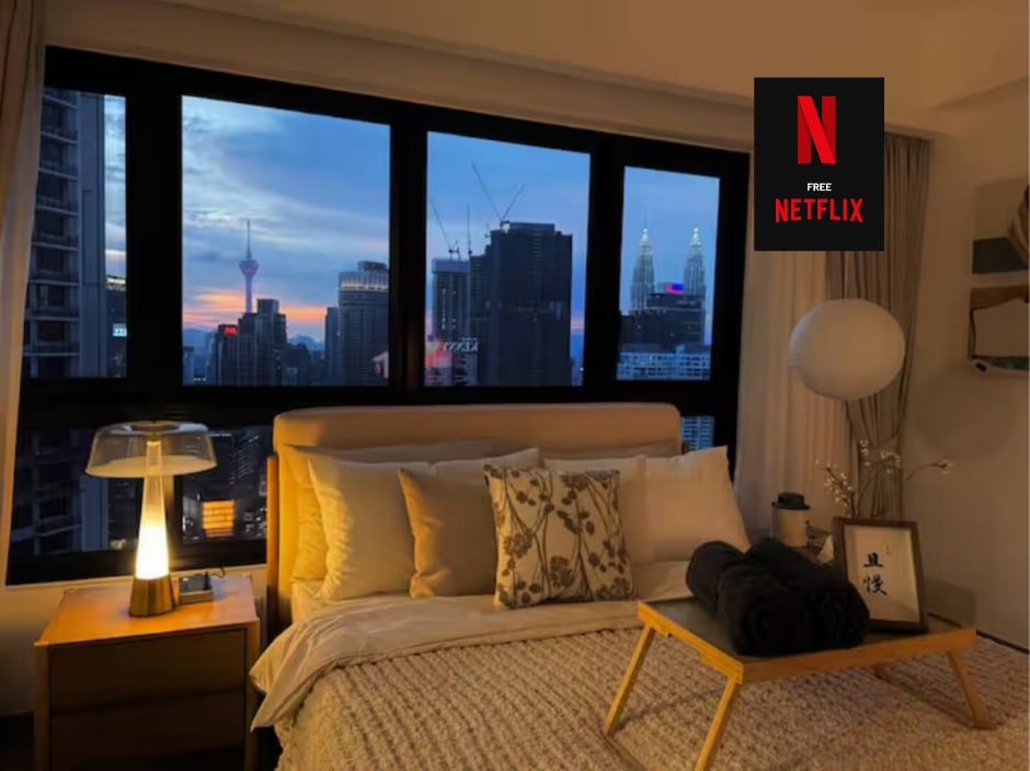Enjoy a stylish experience at this centrally-located place: - 10 mins walk from KLCC Twin Tower - 5 mins drive from KLCC Twin Tower - 5 mins drive to Pavilion Shopping Center - Near the Bukit Bintang Food Paradise and Entertainment Center - Majestic KLCC view (from the pool area) Facilities: - 55" TV with Netflix access - Infinity pool overlooking KLCC Twin Towers, KL Tower & night skyline - Jacuzzi and Pool lounge - Gym access - Fast wi-fi connection - Hot water - Air conditioner