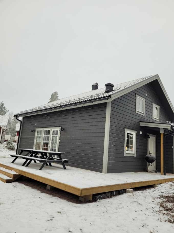 Unikt boende i Husom – 10 km söder om Kläppen Ski Resort. Ett omsorgsfullt designat timmerhus där modern arkitektur möter genuin dalakänsla. Här bor du med naturen runt knuten – med sjö, skog och lugn fjällmiljö alldeles intill. På tomten finns även en vedeldad bastu, perfekt för avkoppling efter en dag på fjället. Sovplatser består av 3 enkelsängar (går att sätta ihop till dubbelsäng) på övervåningen/loft samt en 140cm bred bäddsoffa i vardagsrummet.