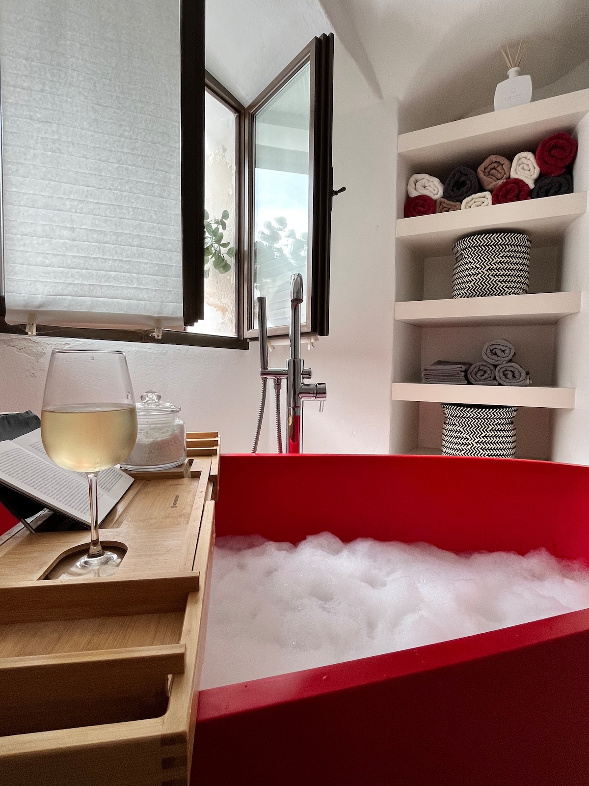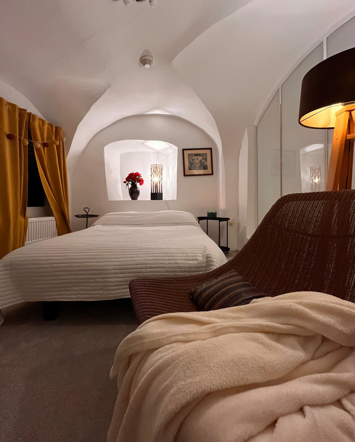 Smart design accommodation. A self-service shop with alcoholic and non-alcoholic beverages, homemade jams, and products from local artisans. We don't just offer white walls, a bed, and a television to get through the night. We provide accommodation that respects your maximum privacy, where you'll feel at home. Play your own music from your phone on the BOSE Bluetooth speaker, watch your favorite movies on the smart TV or iPad. Relax in the private sauna or on the terrace. Enjoy!