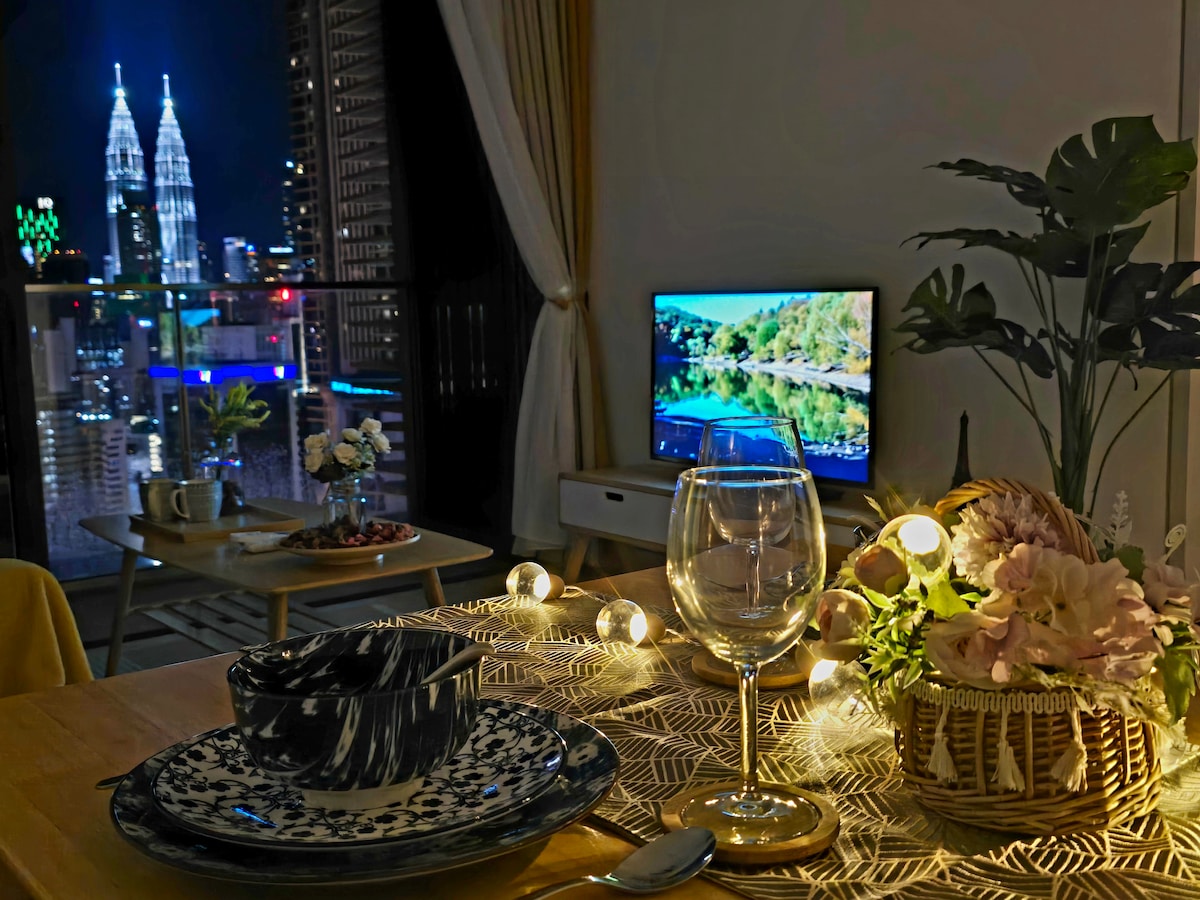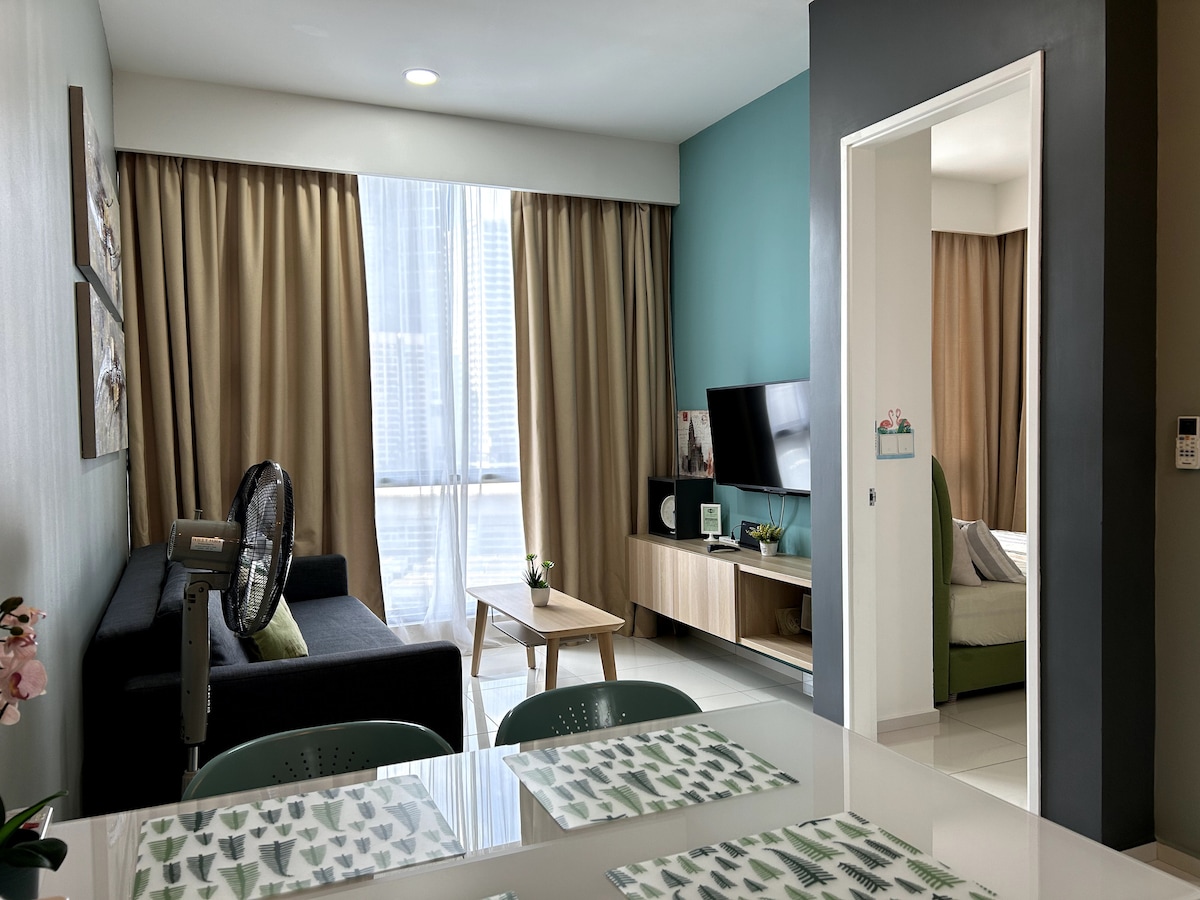 This 1 Br apartment comes with a breathtaking view of KL skyline. It has a 3-seaters sofa living room, dining table, kitchen, desk and a big balcony facing the KL Tower & Petronas Twin Towers. It comes with a 55” TV, Hi-Speed WIFI and a Queen size bed that can fit you comfortably. *The other unit of this Dual Key apartment is a compact Studio with Queen size bed, pantry, washroom & bath. It can fit in friends who travel with you with privacy. Welcome to ask for more details!