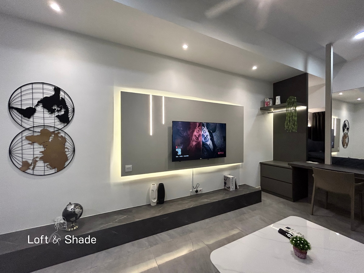 Loft & Shade is a contemporary homestay studio that combines sleek style with cozy comfort. Featuring elegant wooden partitions and a sophisticated black-and-white color scheme, this studio offers a chic and inviting space for two guests. - If this listing do not meet your requirement, please inbox us, we have other Units in the same apartment building for you to choose from. Poolview, Cityview, Seaview, Couple / Family Unit etc.