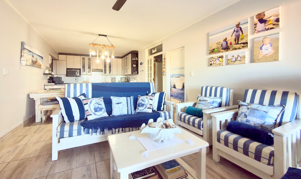 This is a one bedroom flat with beach Décor with access an entertainment area including a pool table, darts board and games. Fully equipped braai/BBQ facilities will ensure your relaxing day around the pool is complete. We have an honesty bar available with a selection of drinks. Walking distance from shops and various eateries. Numerous fast food outlets are just a phone call away. This is a 4 SLEEPER UNIT WITH 2 BEDS.