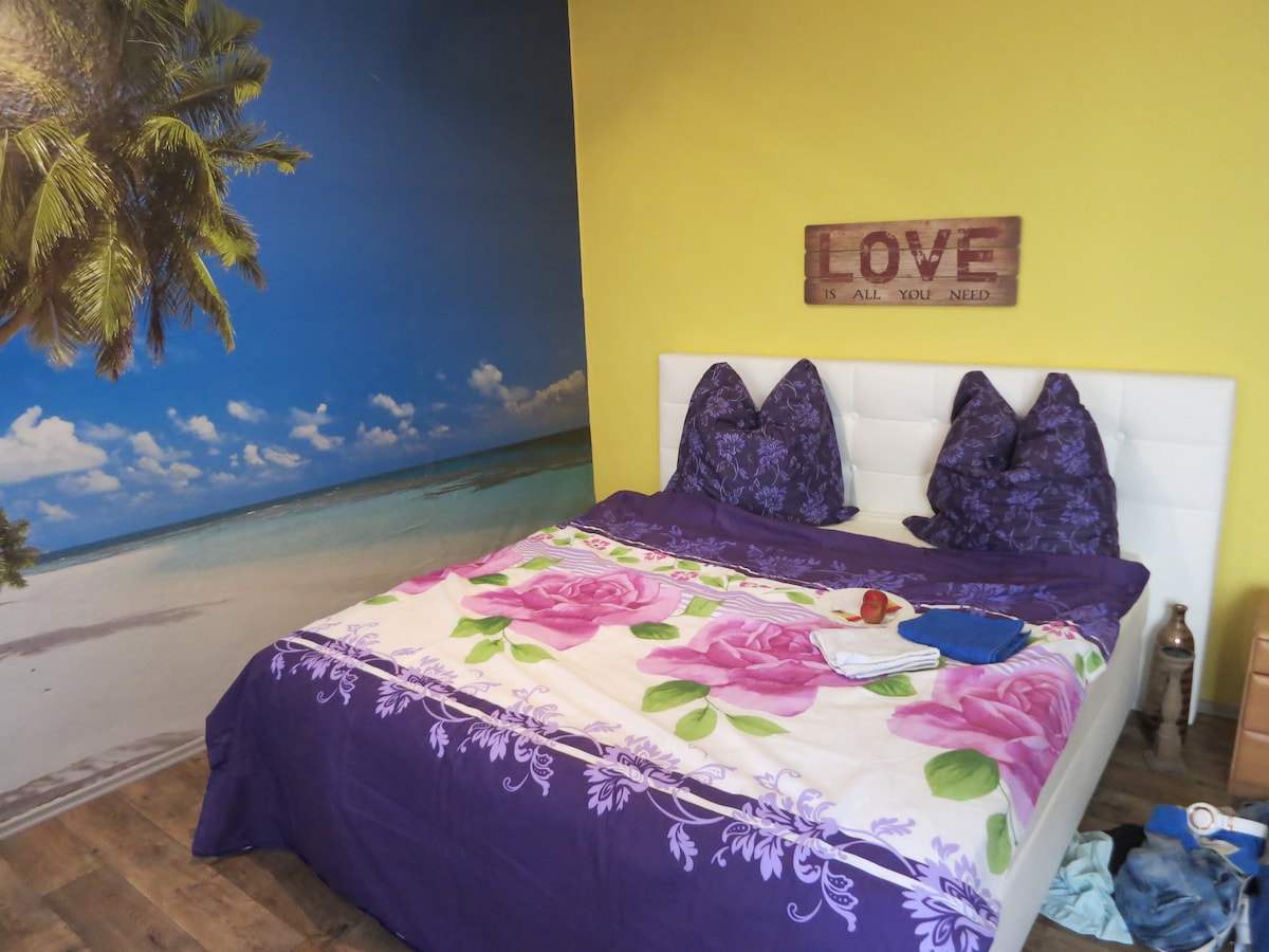 30qm Wohnung in saniertem Zweifamilienhaus Eingangsbereich Hauptraum 1,60m Bett, Couch (mit Schlaffunktion in 1,30m Breite), Esstisch als Anrichte ausgeführt Küche voll ausgestattet (Premium Geräte, Kaffee, Tee, Trinkschoki for free) gegenüber Doppel-Waschtisch links davon Eingang zur offenen Regen-Dusche rechts davon Toilette (abschließbare Tür) el. Rolläden Hauptraum & Klo Plissees an allen Fenstern Fahrzeug(e) kann direkt vorm Grundstück geparkt werden (Sackgasse)! Hof noch nicht saniert