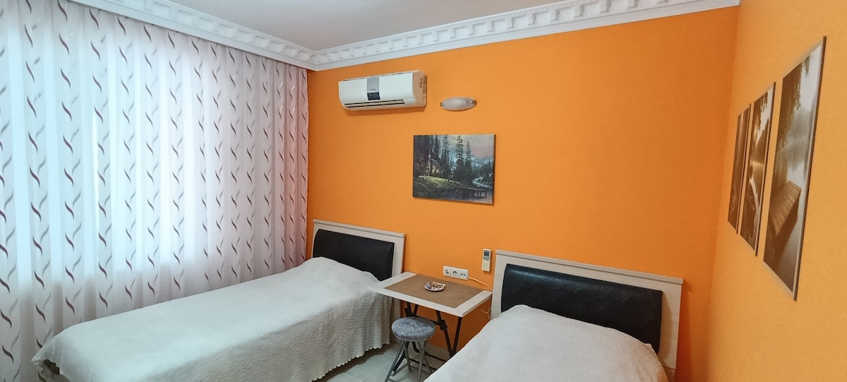 Welcome to our 2-bedroom home in Alanya, just 1 minute from Cleopatra Beach! Our home is perfect for families and features stunning views of the Mediterranean Sea. Enjoy a fully equipped kitchen and well-designed living room with comfortable seating. Relax on the balcony and take in the beautiful sights and sounds of the sea. Book your stay today for a perfect beach vacation in Alanya!