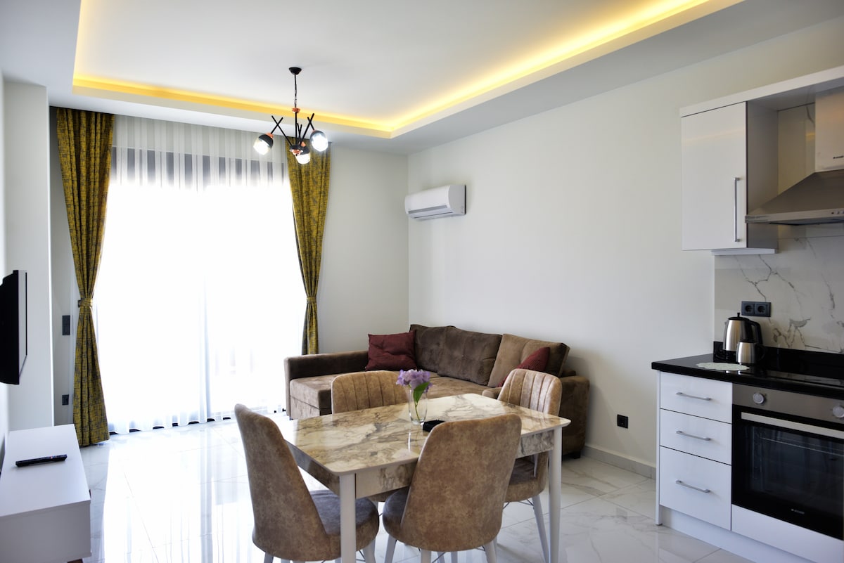 Njut av en elegant upplevelse på detta centralt belägna boende i ett lugnt område. Lägenheten är fräsch och fullutrustad, erbjuder bekväm och njutbar vistelse. Huset är byggd år 2020, erbjuder gemensam pool, bastu, gym och jacuzzi. Belägen 150 m från stranden och nära några av de bästa restauranger i Alanya. Promenera 5 min längs stranden och du kommer till Ataturk torget. Migros supermarket finns i närheten.