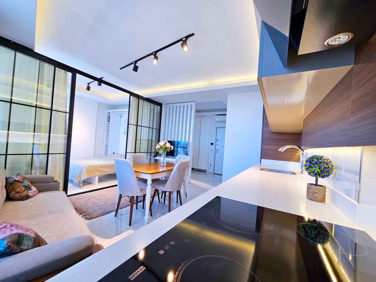 Элегантная дизайнерская квартира в самом сердце Алании — наслаждайтесь утонченным комфортом Средиземного моря! Премиальная резиденция с инфраструктурой уровня 5* отеля расположен всего в 100 метрах от собственного пляжа с уютным кафе, где утро начинается с ароматного кофе, а день — с освежающими коктейлями и легкими закусками. Идеальное расположение в центре Алании — шаговая доступность до лучших ресторанов, пляжных клубов, магазинов и знаковых достопримечательностей.