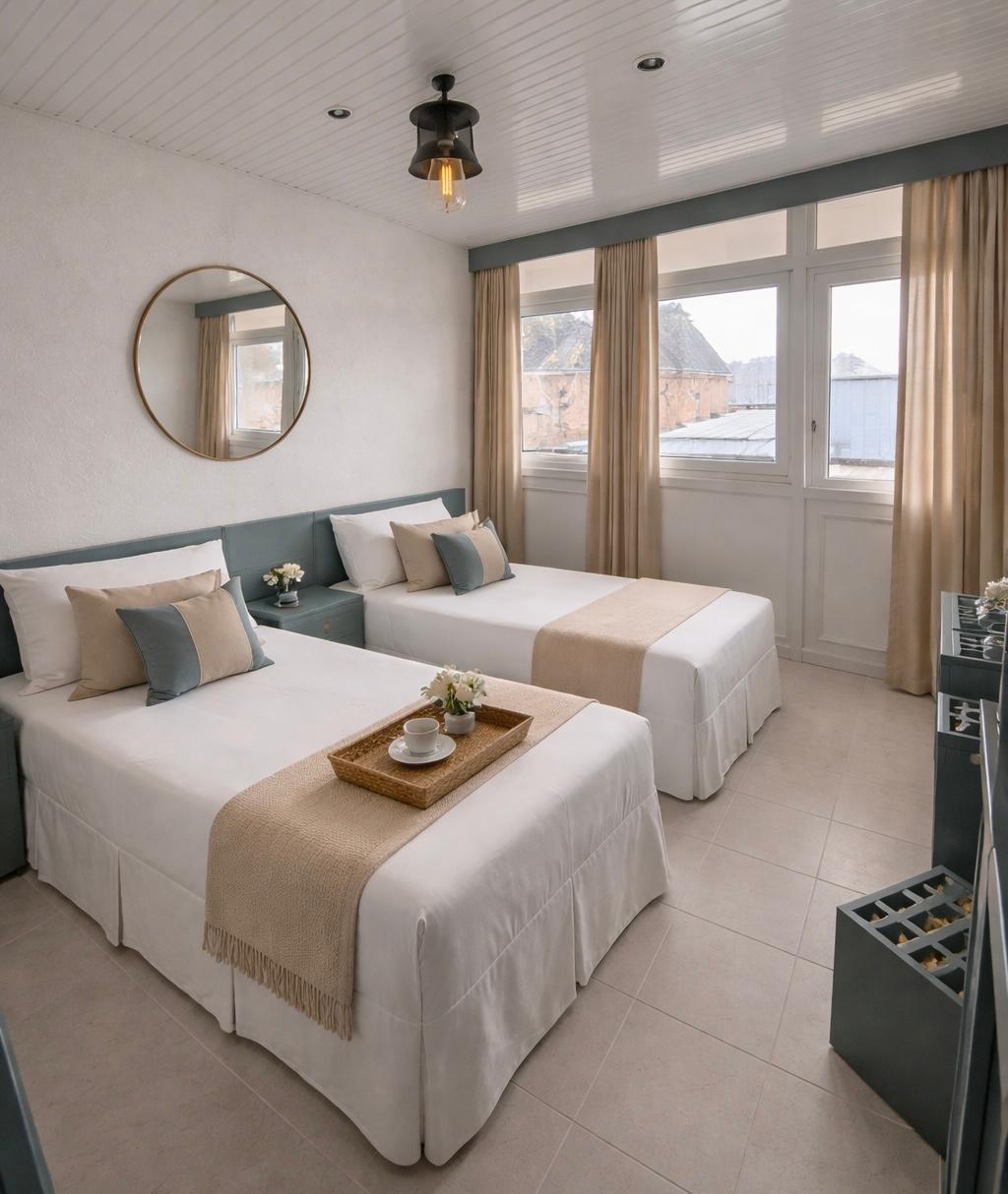 Misafirlerimizin farklı ihtiyaç ve beklentilerine yanıt verebilmek adına özenle tasarlanmış oda seçeneklerimizle, tatilinizi keyifli ve unutulmaz bir deneyime dönüştürmeyi amaçlıyoruz. İster çift kişilik bir konfor arayışında olun, ister ayrı yataklı bir düzen ya da çocuklarınızla birlikte geniş ve rahat bir alan... Her oda tipimizde temizlik, huzur ve içten bir misafirperverlik sizi karşılayacak.