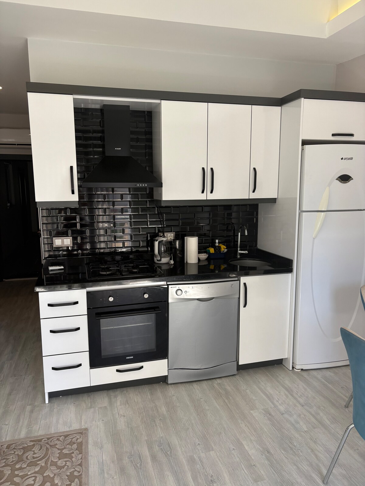 Apartment near Kleopatra Beach. The apartment is located in the heart of Alanya, just a few steps from the famous Kleopatra Plajı. One of the best locations in the city: a beautiful seaside promenade with bike paths, sports and children’s playgrounds, green park areas with fountains, Alanya Aquapark, cafés and restaurants — all right at your doorstep. Perfect for holidays, winter stays, remote work, or comfortable living by the sea. Beach, city center, and vibrant atmosphere — just steps away.