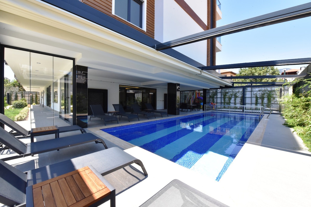 Indulge in luxury at Armani B104, a stylish Mahmutlar apartment just a 5-min walk from the beach. Enjoy convenience with a daily free shuttle to Alanya center and our private beach. On-site, discover a market, bar, and restaurant, while unwinding at both indoor and outdoor pools. Pamper yourself with spa facilities—sauna, hamam, massages, jacuzzi—all within reach. Your chic retreat awaits, where every detail ensures a perfect blend of comfort and sophistication.