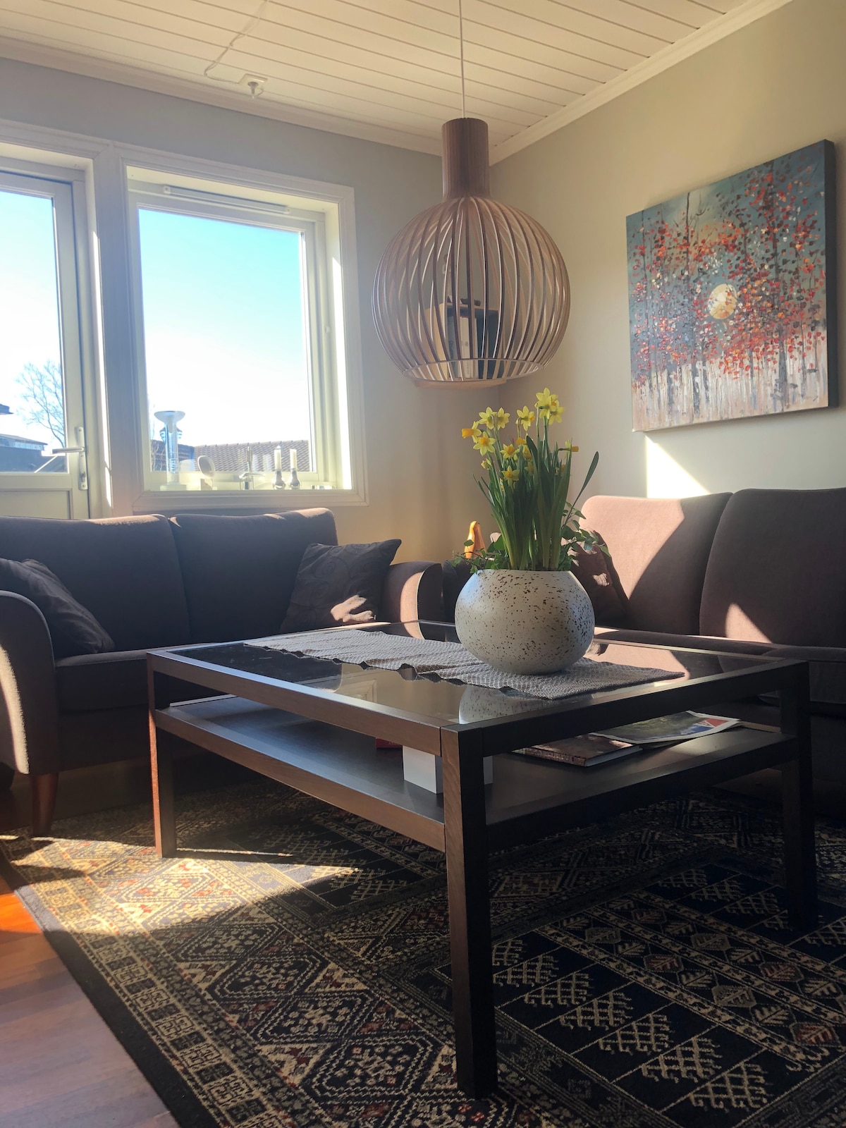 Modern cabin with 3 seperate bedrooms, kitchen, bathroom and livingroom in addition to a loft with 2x beds. Stavanger city centre is ca. 30 mins drive away and can be reached by car or taxi. There is a shopping centre less than 10 mins drive from the cabin. This is a modern cabin with most of the services you will find in your own home. It is 2 minutes to the sea and some of the best beaches in Norway close by. Nice outdoor area with table/chairs, playground and space for several cars.