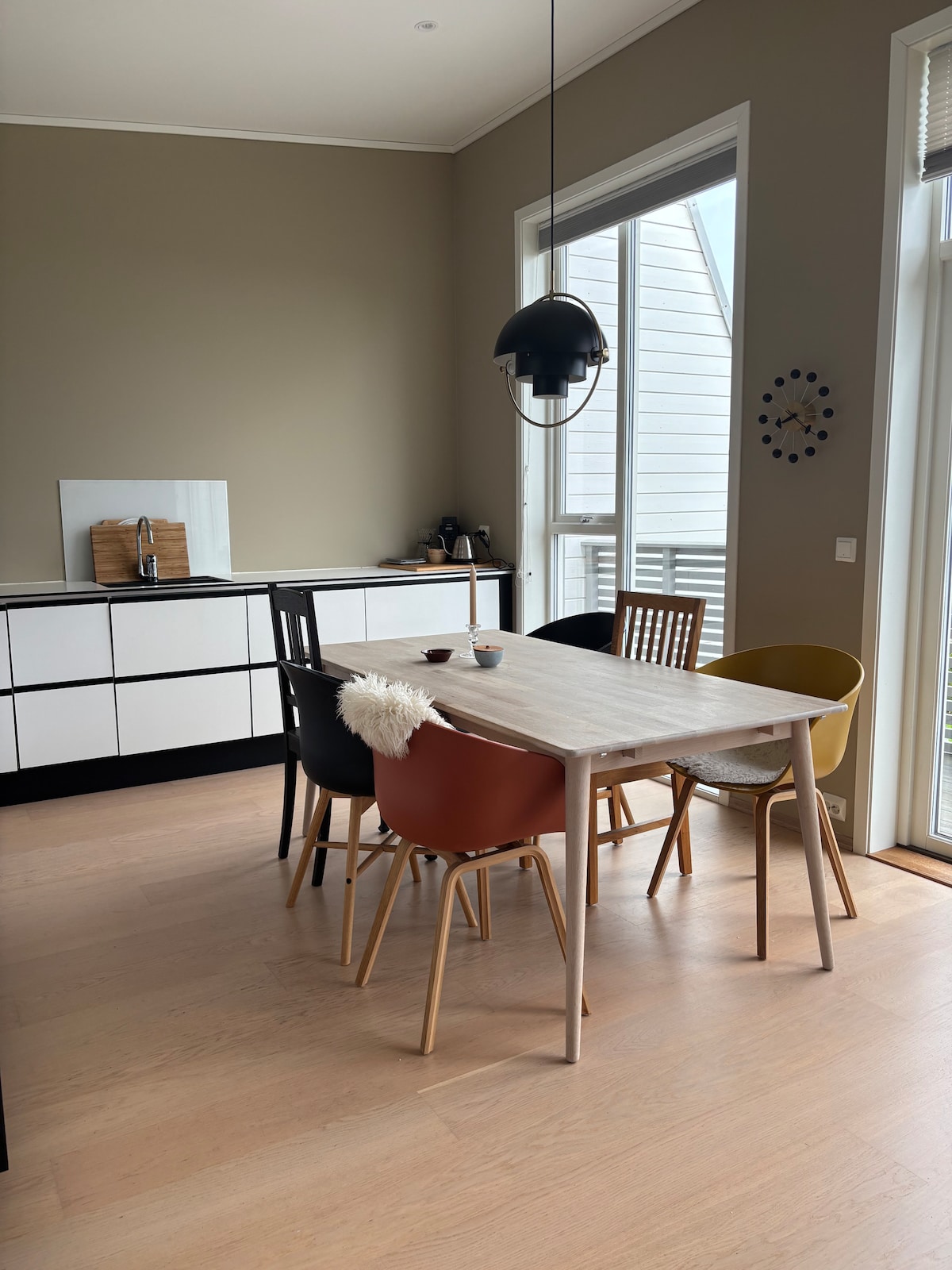Welcome to our bright and modern home, just 2.7 km from Sandnes center! The house offers: • 3 bedrooms with 120 cm beds • 1 master bedroom with a 180 cm bed • options for a child’s mattress and a guest bed. • All beds are made for your arrival. • Free WiFi, parking, and EV charger(for a fee). By car its 7 min to Sandnes, 20 min to Stavanger, 15 min to Sola Airport and Kongeparken. 5 min walk to bus stop, and 15–20 min walk to train station(Ganddal)