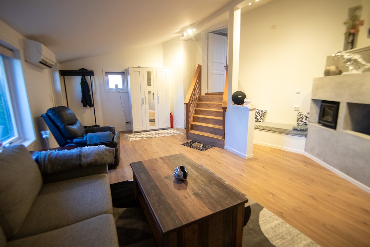 Modern cabin with 3 seperate bedrooms, kitchen, bathroom and livingroom in addition to a loft with 2x beds. Stavanger city centre is ca. 30 mins drive away and can be reached by car or taxi. There is a shopping centre less than 10 mins drive from the cabin. This is a modern cabin with most of the services you will find in your own home. It is 2 minutes to the sea and some of the best beaches in Norway close by. Nice outdoor area with table/chairs, playground and space for several cars.