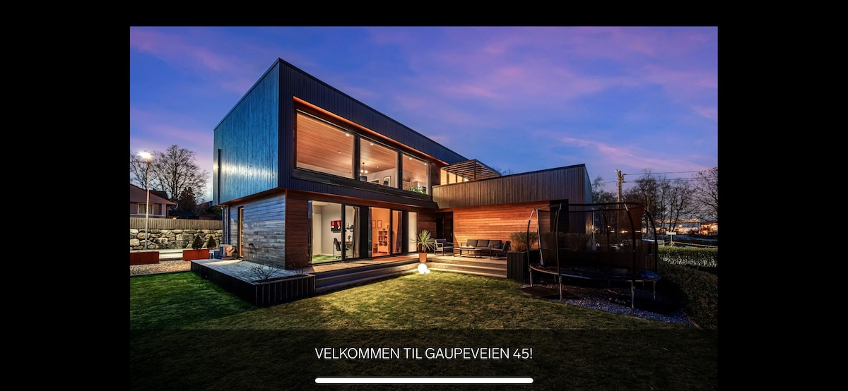 Nytt stort og moderne hus i Sandnes. Huset er en 10 min togtur fra urbane Stavanger sentrum, og 5 min fra Sandnes sentrum. Matbutikk rett rundt hjørnet. Stort, flott og eksklusivt, men samtidig veldig koselig. Her vil du føle deg som hjemme selv om du er på ferie. Det er veldig sentralt plassert og et glimrende utgangspunkt for turer til Kjerag og Preikestolen. Hva med en tur til Jærens flotte strender, Kjerag eller Preikestolen. Det er også fantastisk natur rett rundt huset.