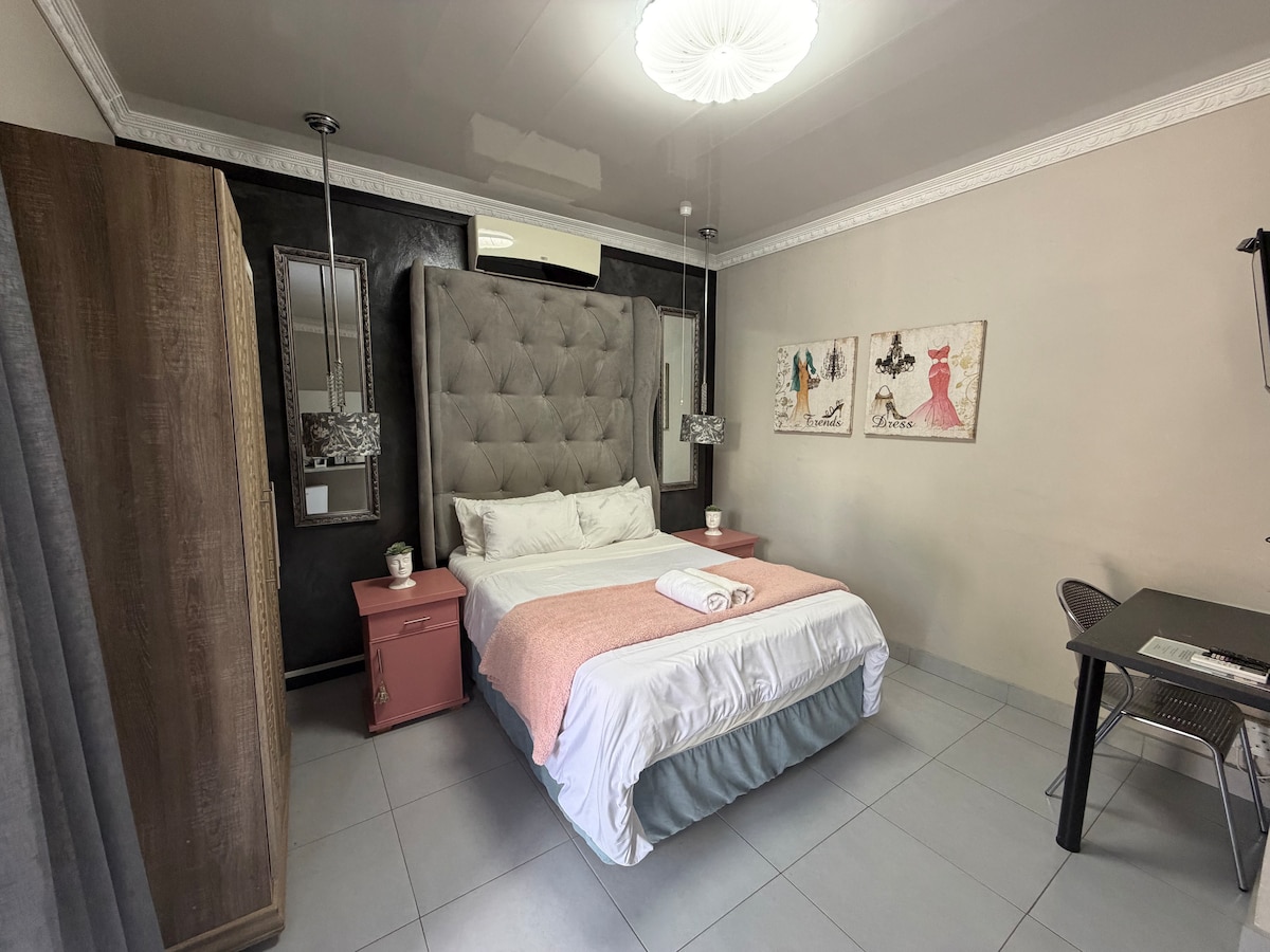 You’ll love our place because of the homely feeling, cleanliness and location in a quiet upmarket residential area. Close to shopping mall, restaurants, movies, N12, hospitals, schools. Breakfast can be provided at an additional fee. Rooms are fully equipped with own entrance from the garden, en-suite bathroom, microwave, fridge, cutlery, Dstv. Safe undercover parking available. Our place is good for business travellers, solo travellers, families and couples. Well-behaved pets are allowed.