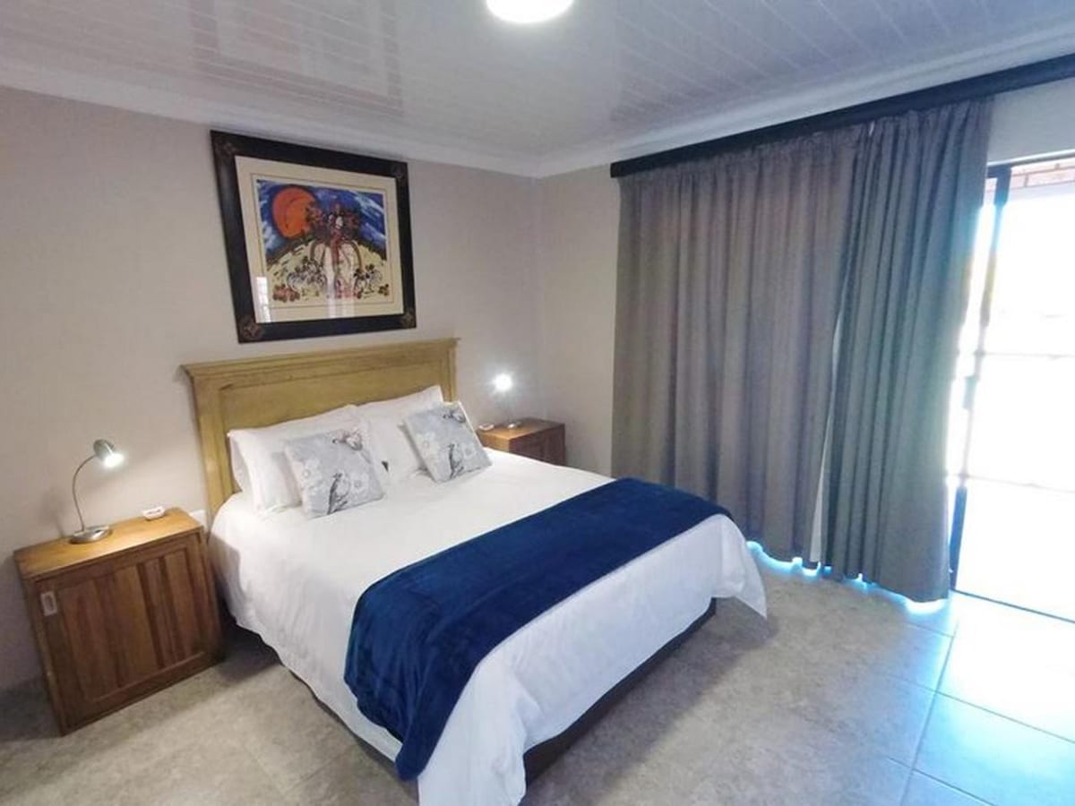 The De Lux Executive Suite has a King size bed and en-suite full bathroom. Equipped with microwave oven, fridge, desk, DStv, hair dryer and air conditioner, crockery, coffee and tea facilities. Ideal for honeymoon couples or business executives. Beautiful view to the garden. Private Entrance.