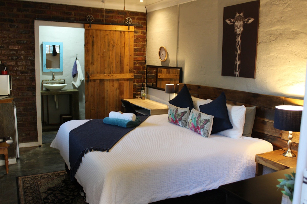 Keep it simple at this peaceful and centrally-located place. This Room has a King Sized Bed. It is private and features under roof parking, with remote access, right in front of your room. Load-shedding is not a problem with a dedicated inverter running some lights and super speed WIFI - ensuring you are never left in the dark!