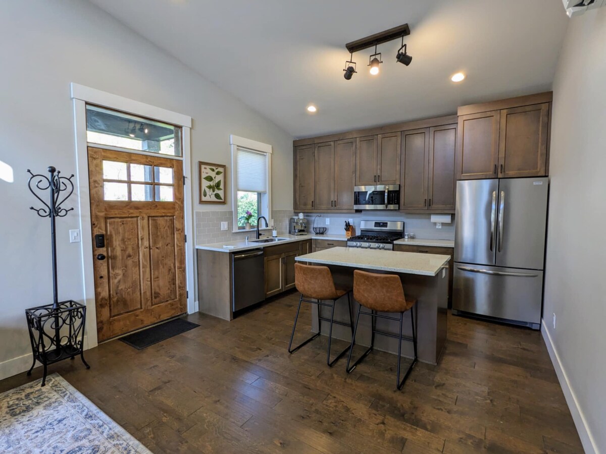 Brand new charming 2 bedroom suite. The entire bottom floor of the main house in the heart of White Salmon, WA. Private entrance. Walking distance to all great restaurants, bars, and shops downtown, or a two minute drive. Come explore the beauty of the Gorge to bike, hike, kite, fish, ski, raft, kayak and windsurf to name of few of the many activities at your fingertips. Just an hour plus away from Portland. An amazing getaway for a few days or longer vacation. We are set up for adults only.