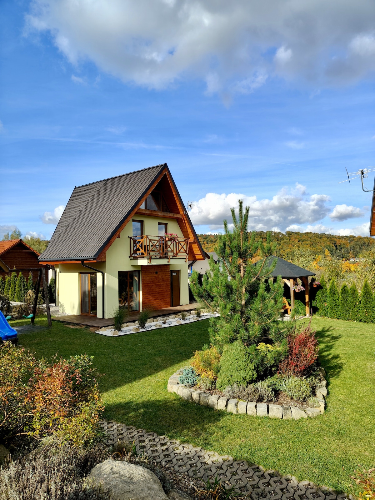 Marzysz o ucieczce od zgiełku miasta? Ostoja Radków, to miejsce stworzone dla Ciebie. Dwa całoroczne domki z baliami otulone pięknym krajobrazem Parku Narodowego Gór Stołowych, oferując niesamowite widoki na majestatyczne pasmo gór. Przyroda rozkwita tu w pełnym blasku, a Ty masz okazję delektować się jej pięknem. Bez względu na to, czy jesteś miłośnikiem aktywnego wypoczynku w górach, czy po prostu pragniesz odetchnąć od miejskiego hałasu, ta oaza spokoju spełni Twoje oczekiwania. Zapraszamy